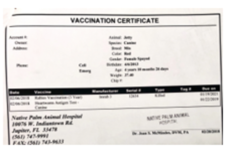 Rabies vaccination proof